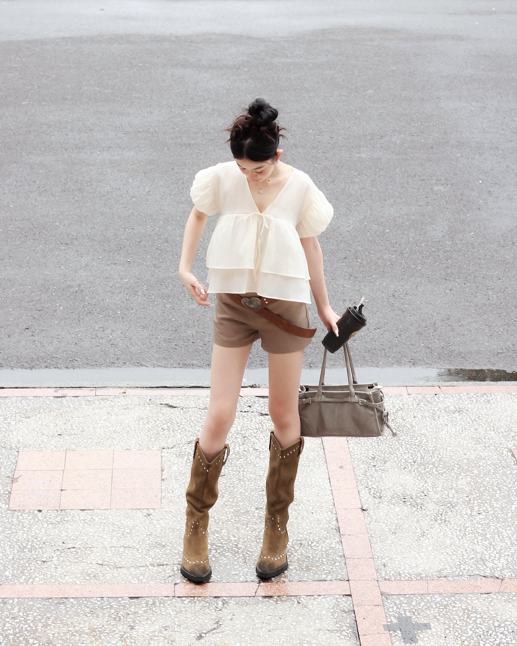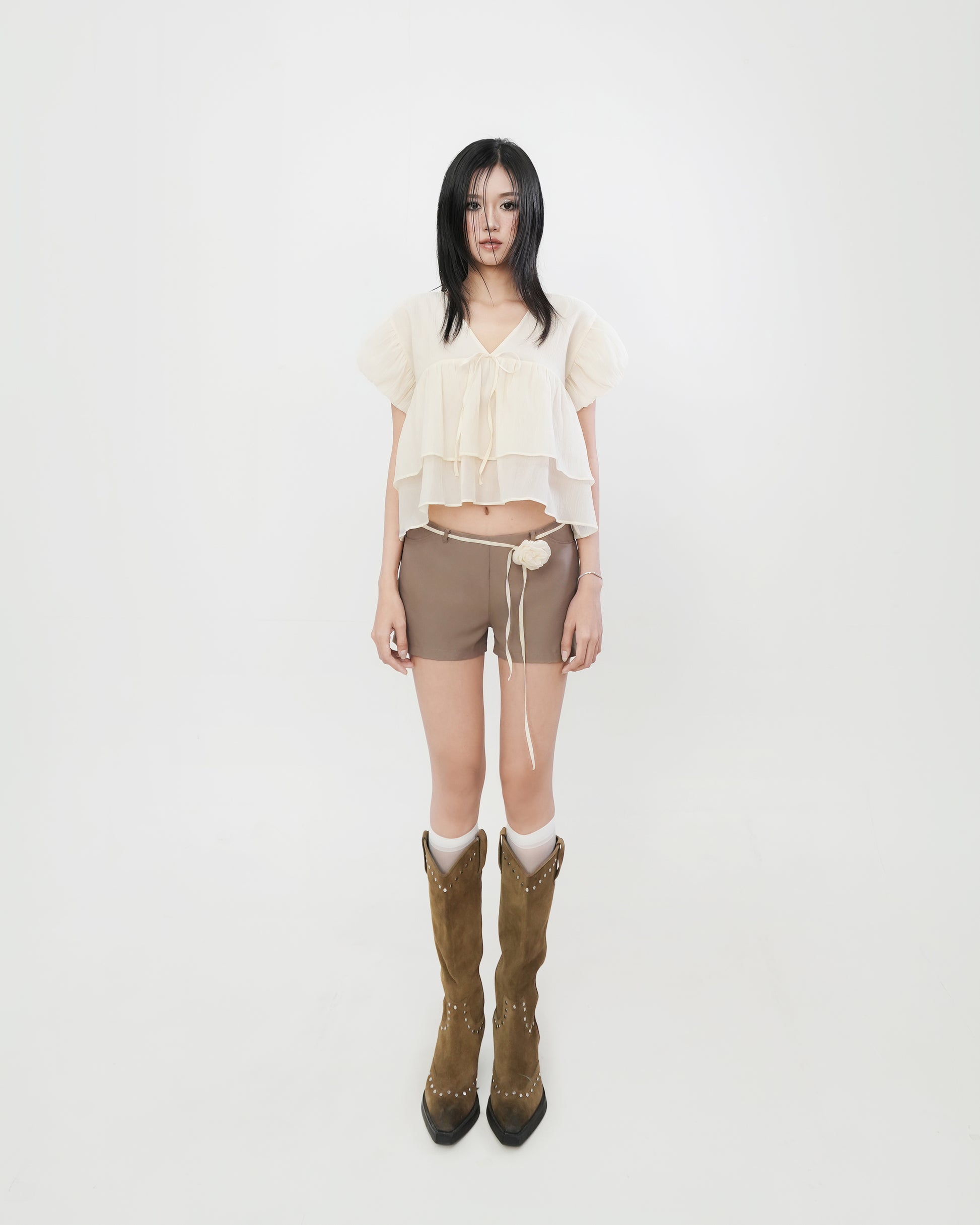 - Product details: V-neck puff sleeve blouse