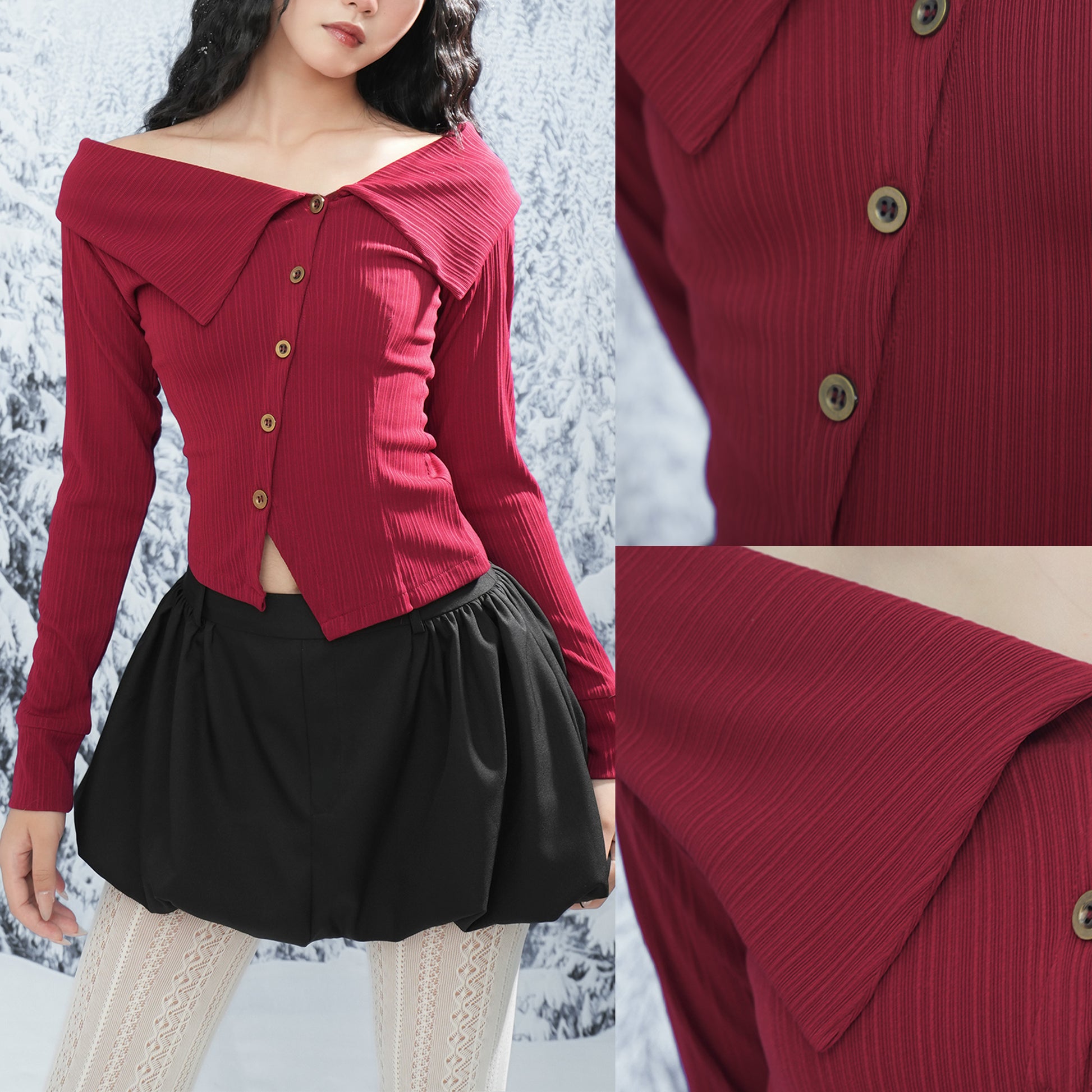 - Product details: Long-sleeved off-shoulder T-shirt with large neck