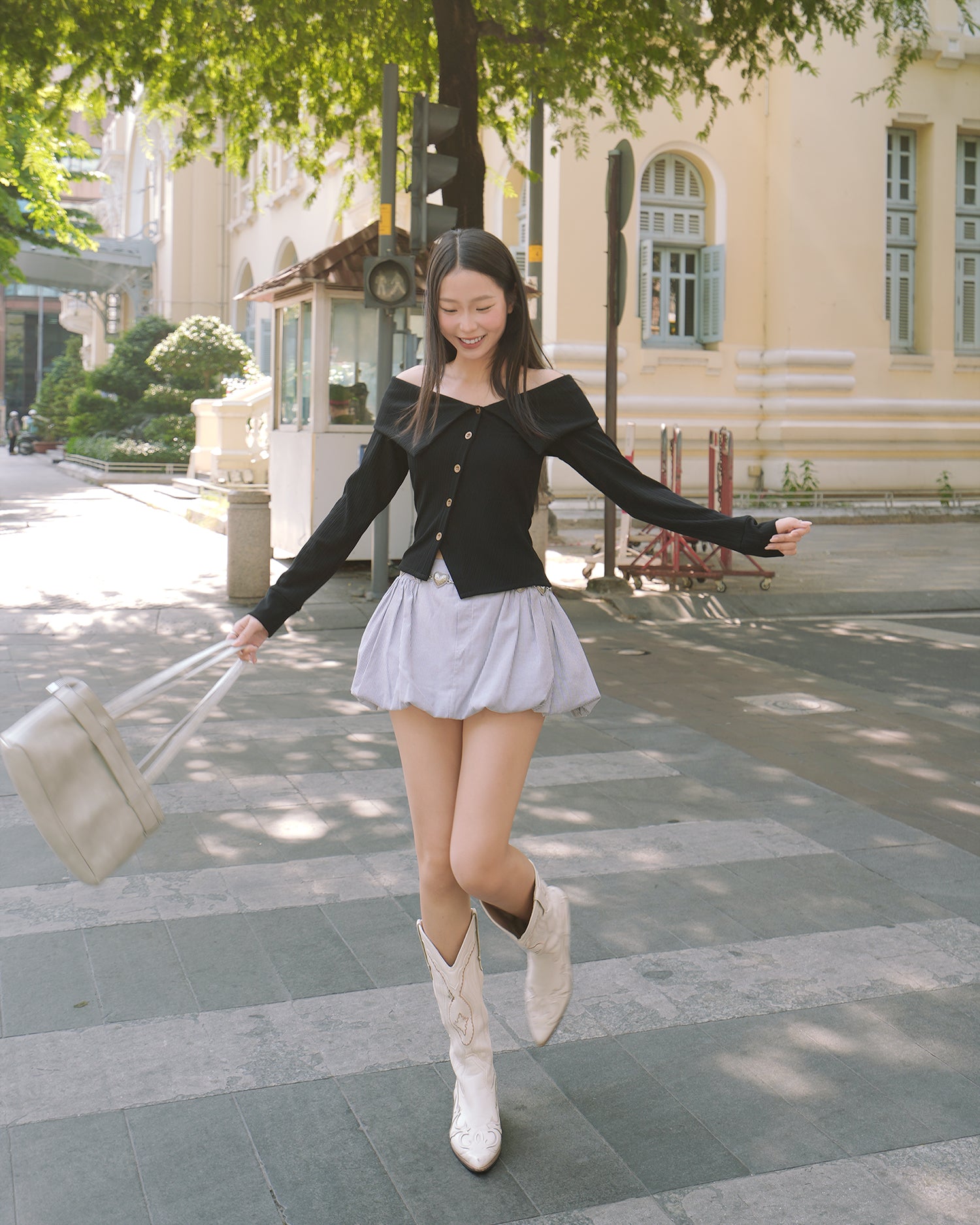 - Chi tiết sản phẩm: Áo thun tay dài trễ vai cổ bản to