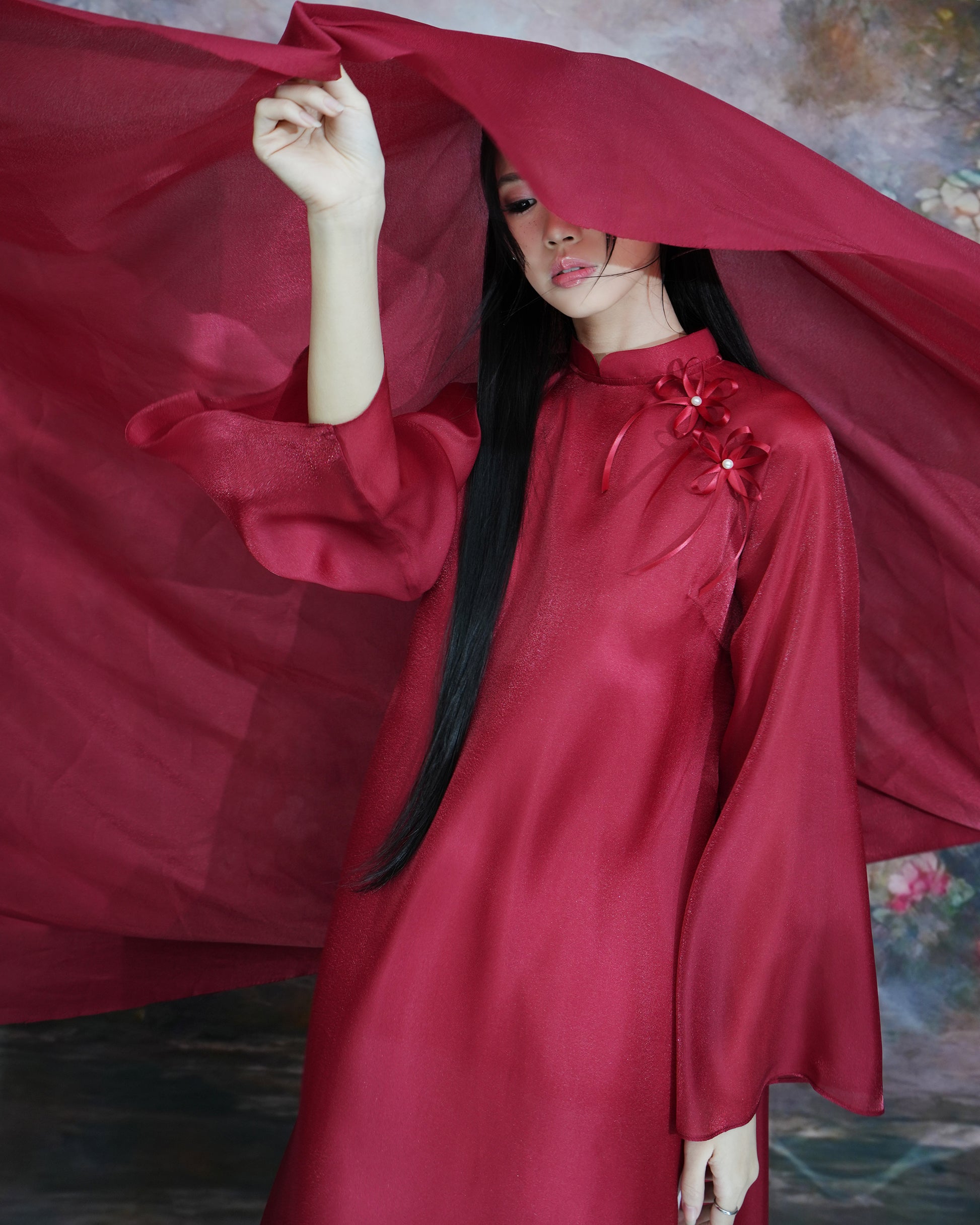 - Material: Shimmering silk