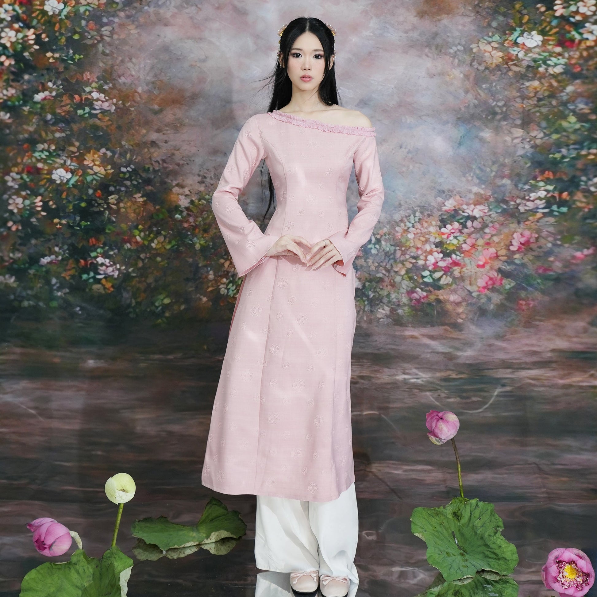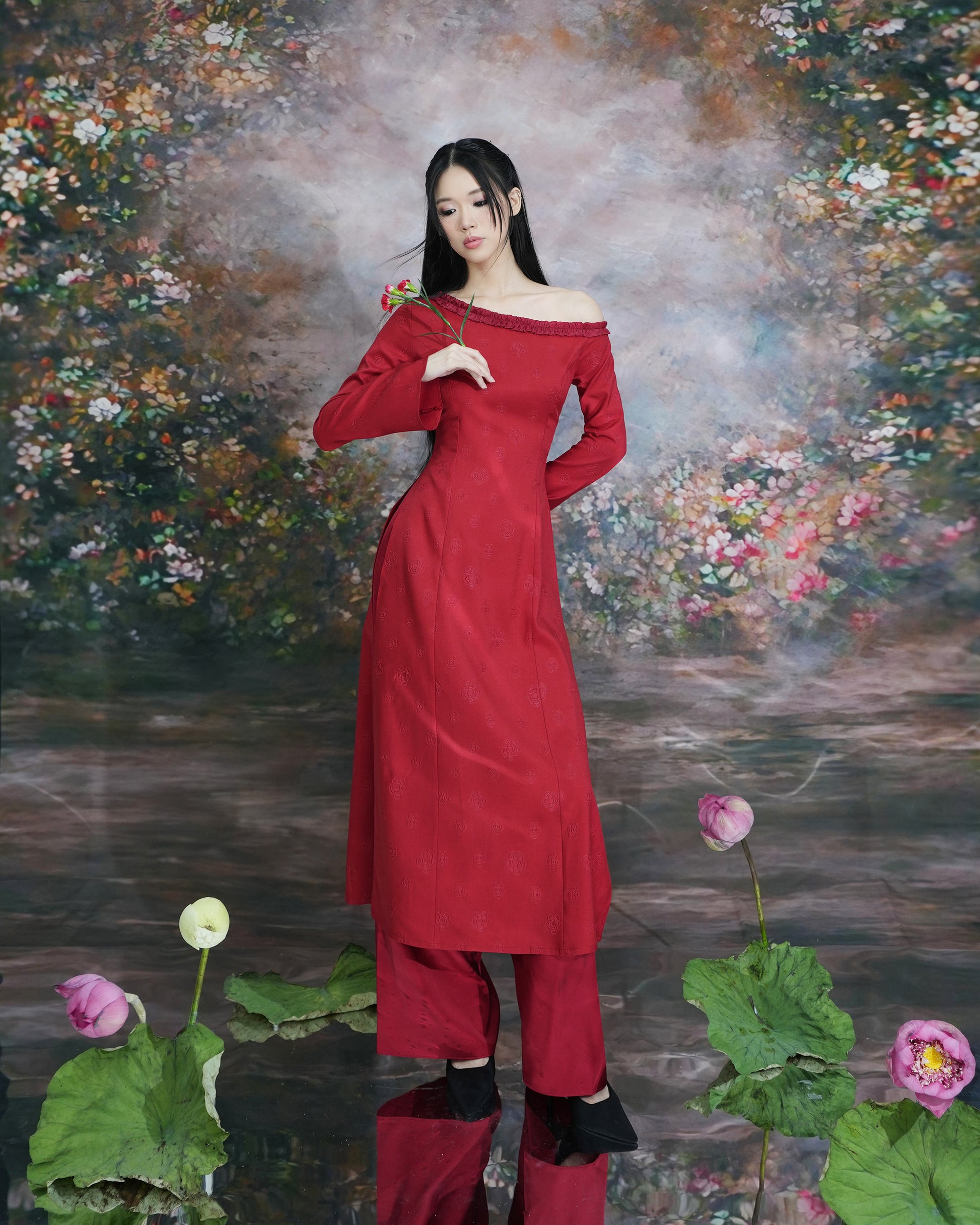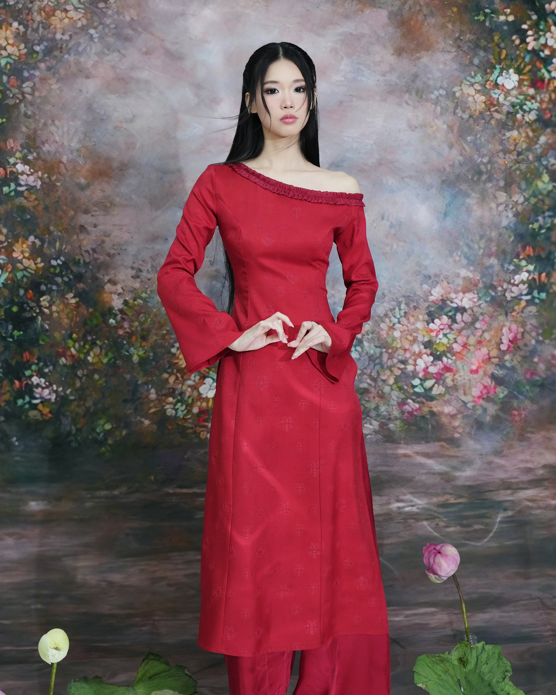 - Chi tiết sản phẩm: Combo Áo trễ vai dáng dài 2 tà phom ôm+Quần ống rộng áo dài (ADT03+Q09)