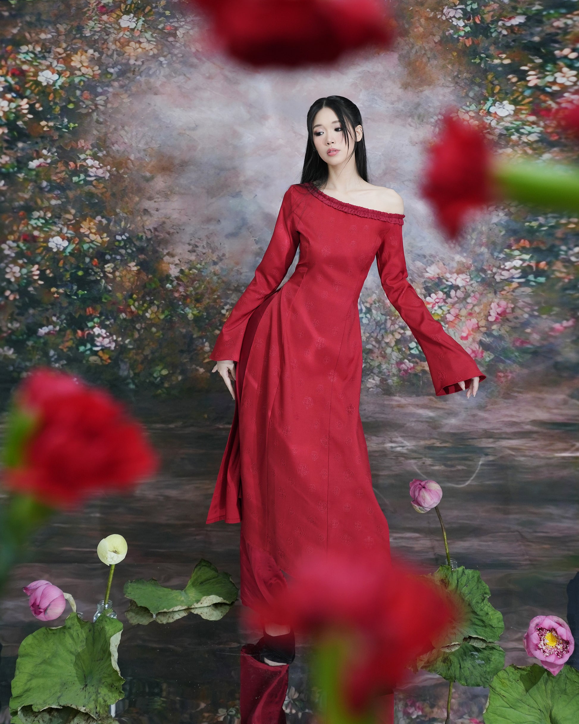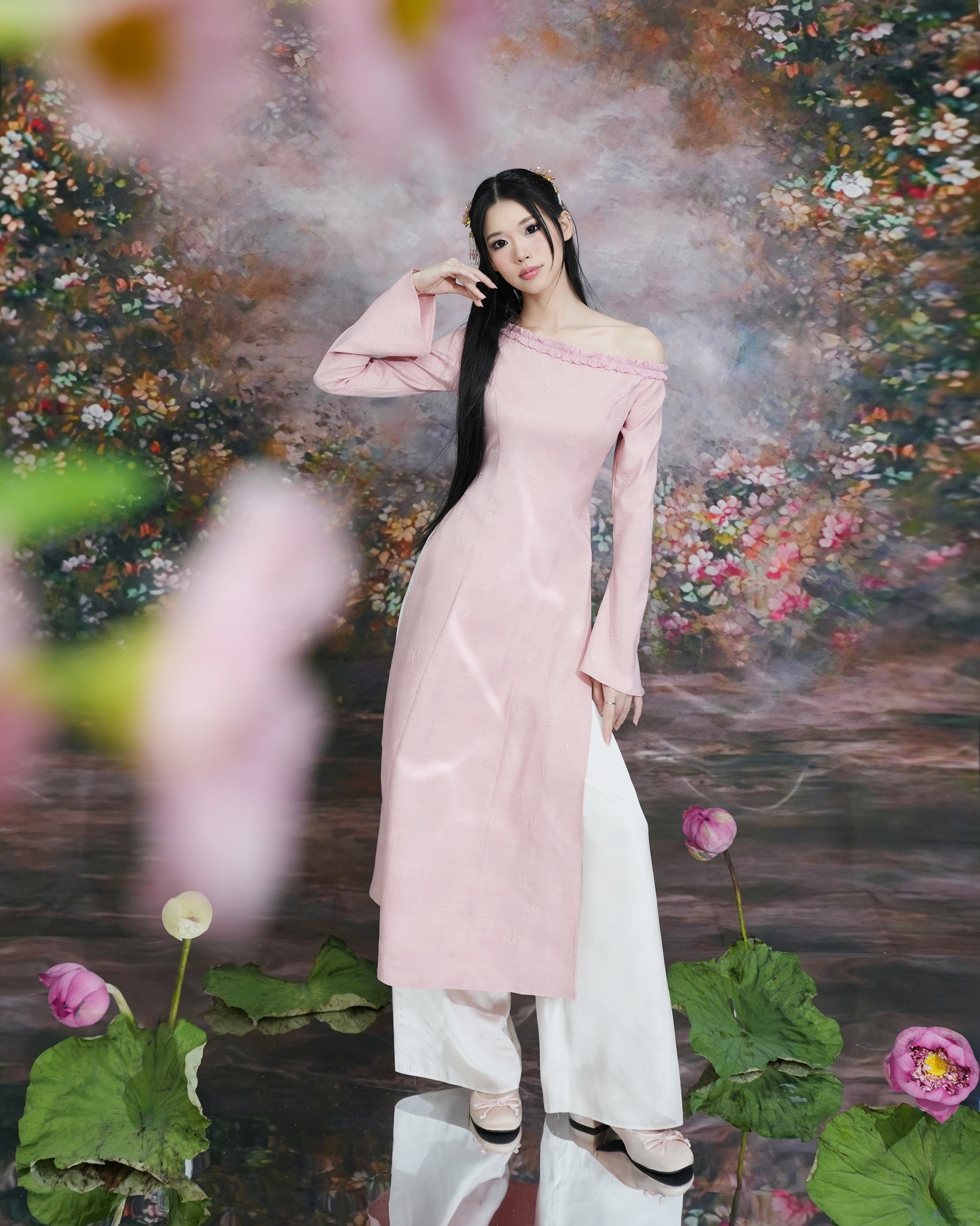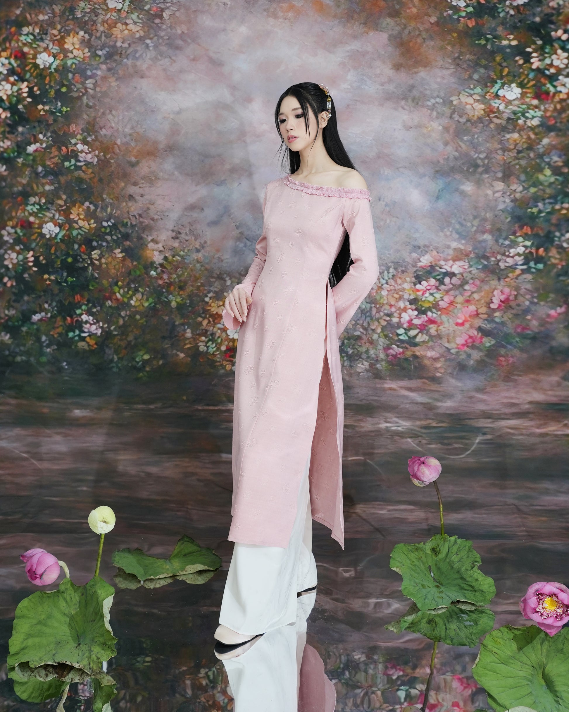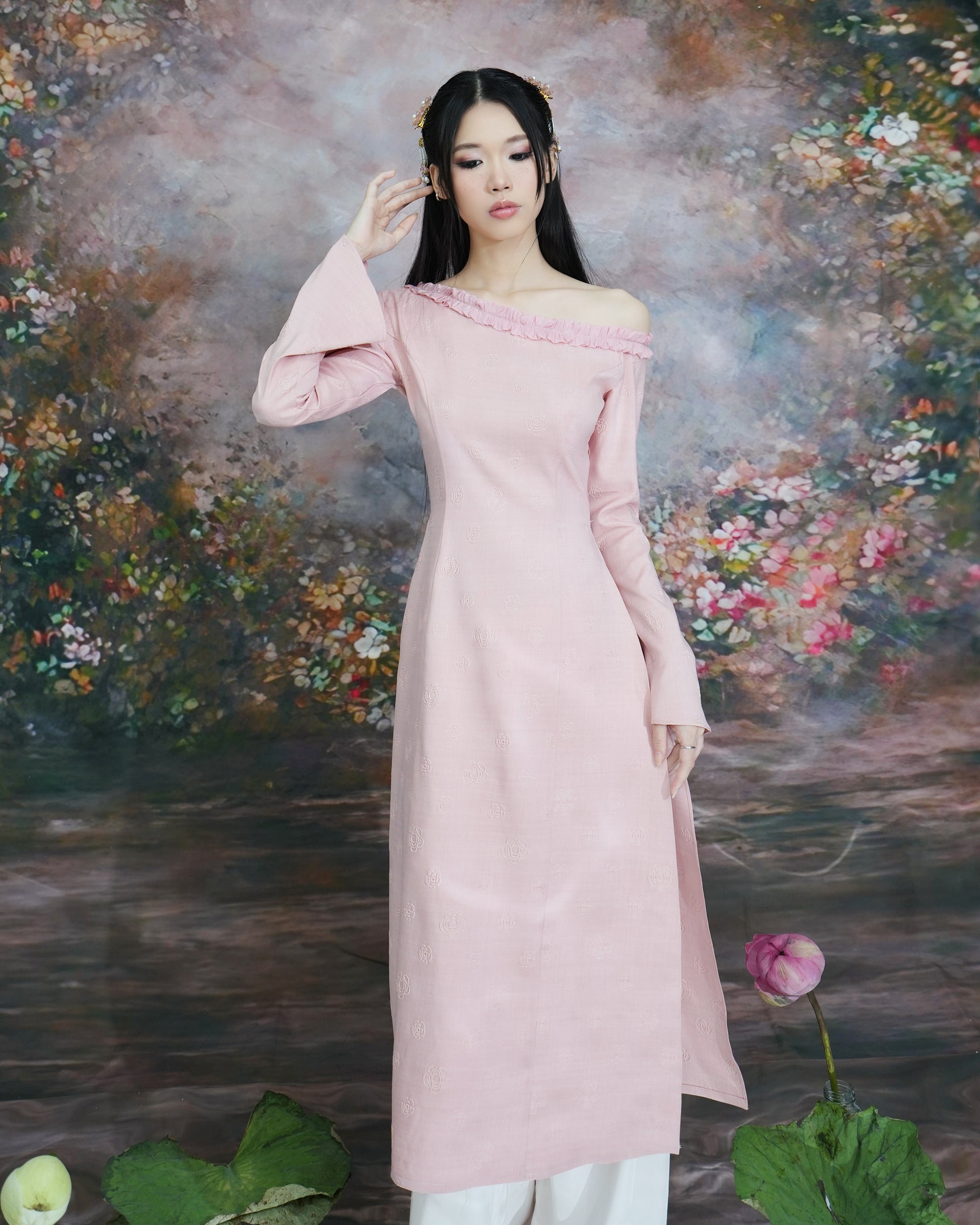 - Chi tiết sản phẩm: Combo Áo trễ vai dáng dài 2 tà phom ôm+Quần ống rộng áo dài (ADT03+Q09)