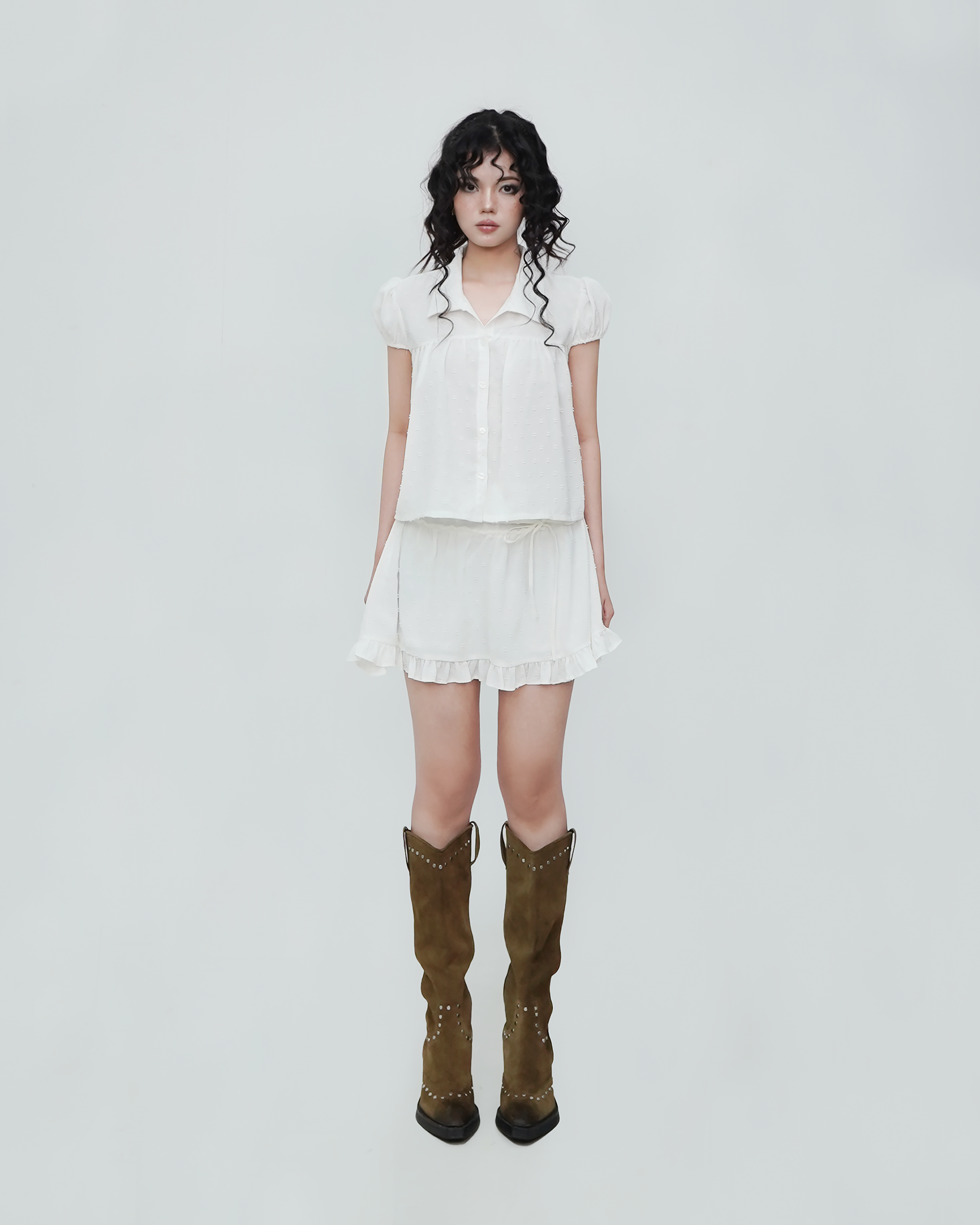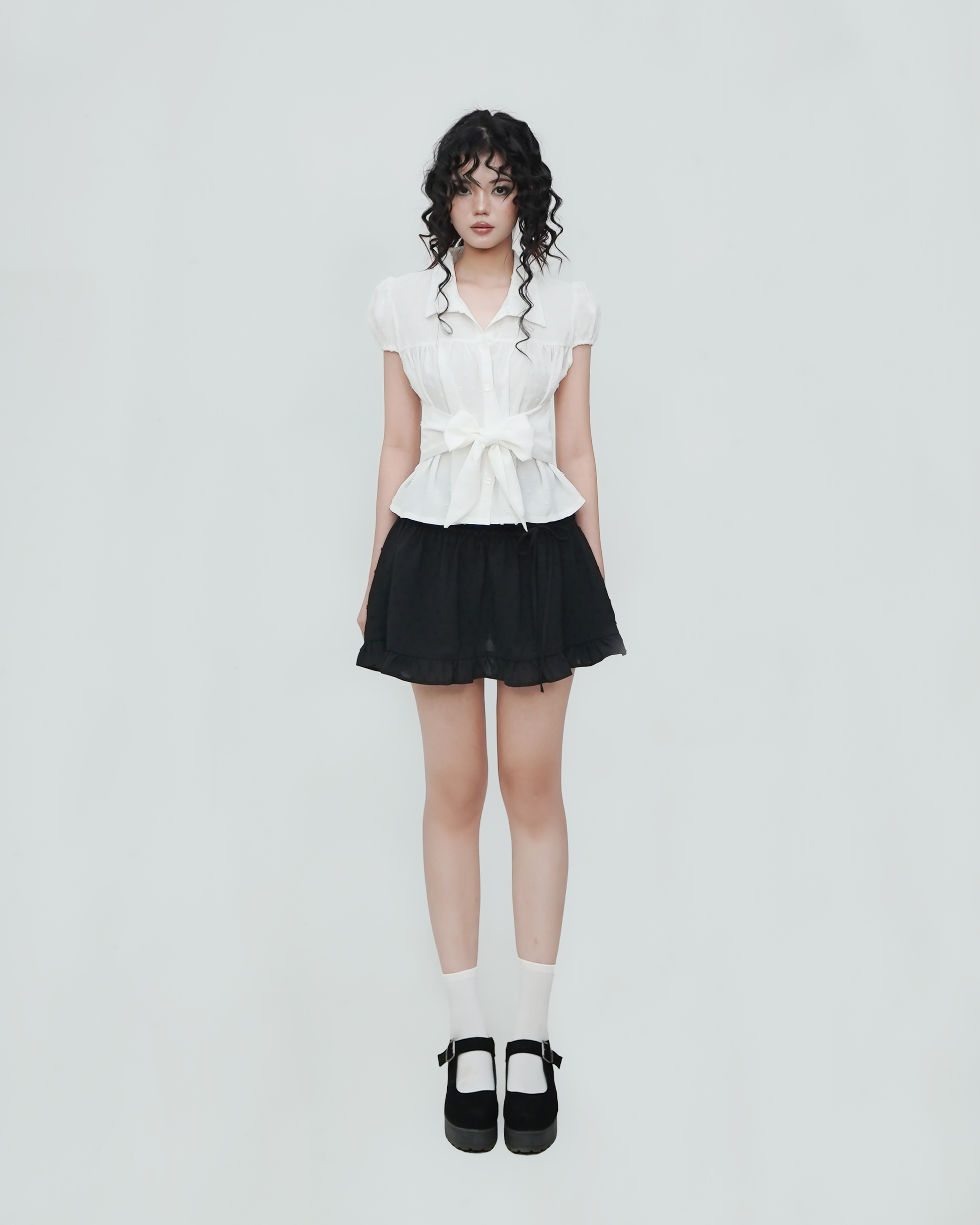 - Chi tiết sản phẩm: Chân váy ngắn xoè thắt nơ