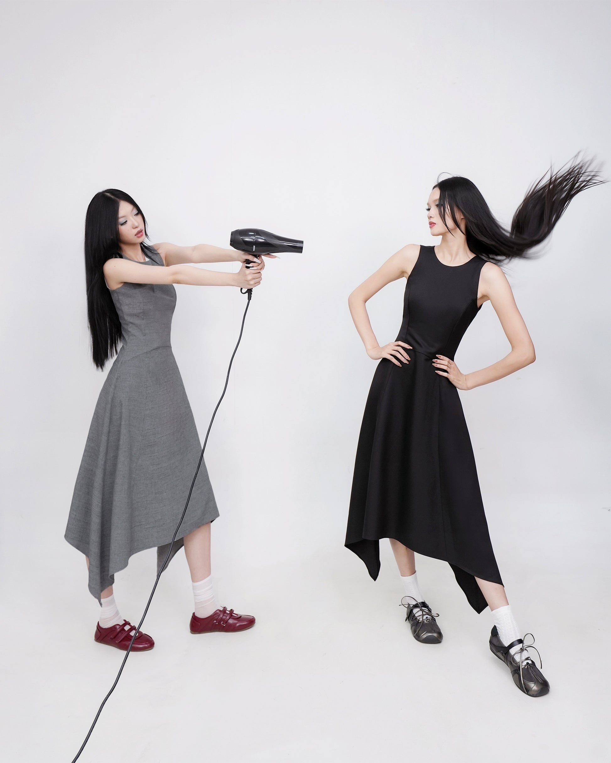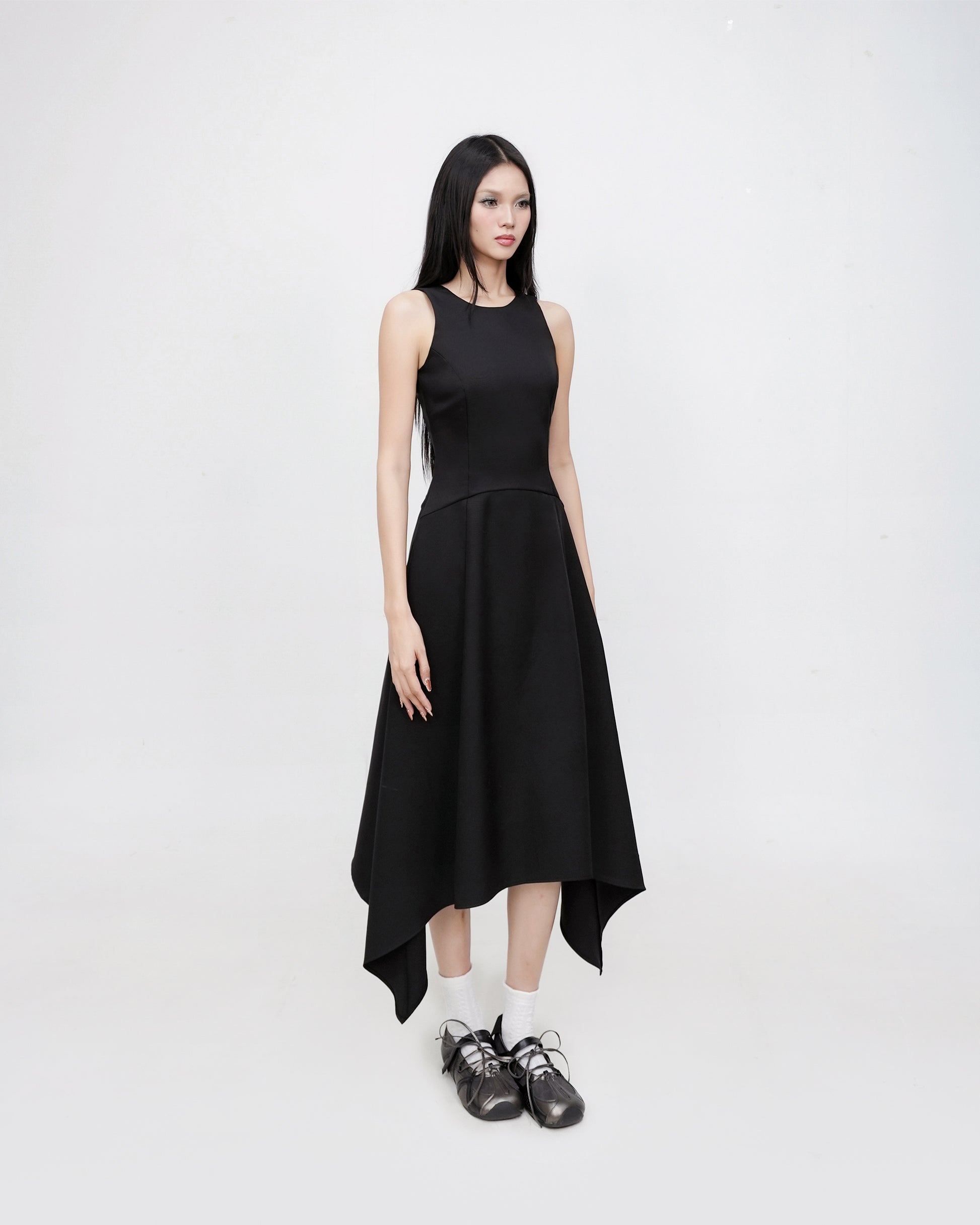 - Chi tiết sản phẩm: Đầm dài trơn cổ tròn dáng xoè
