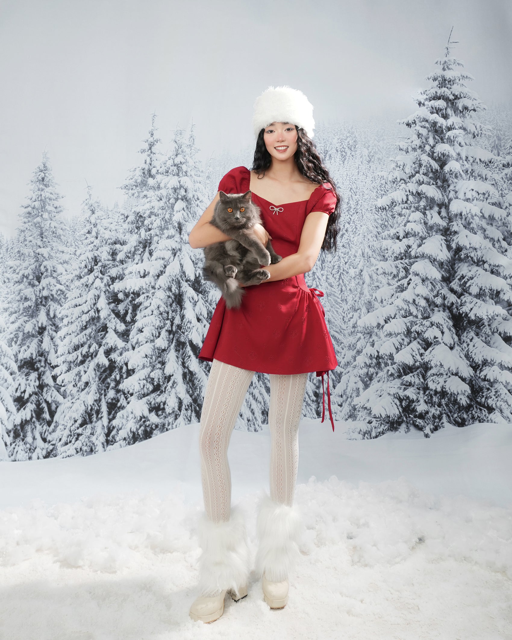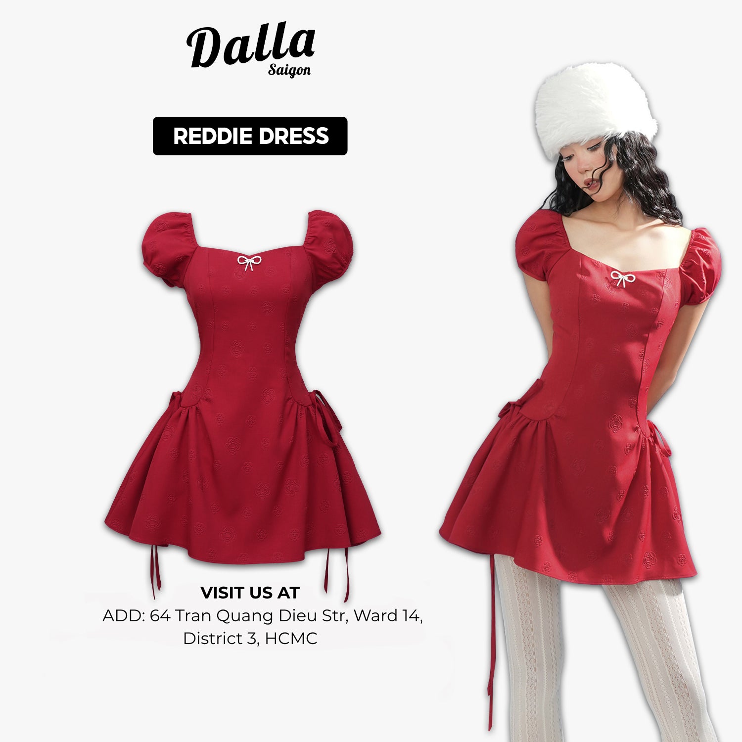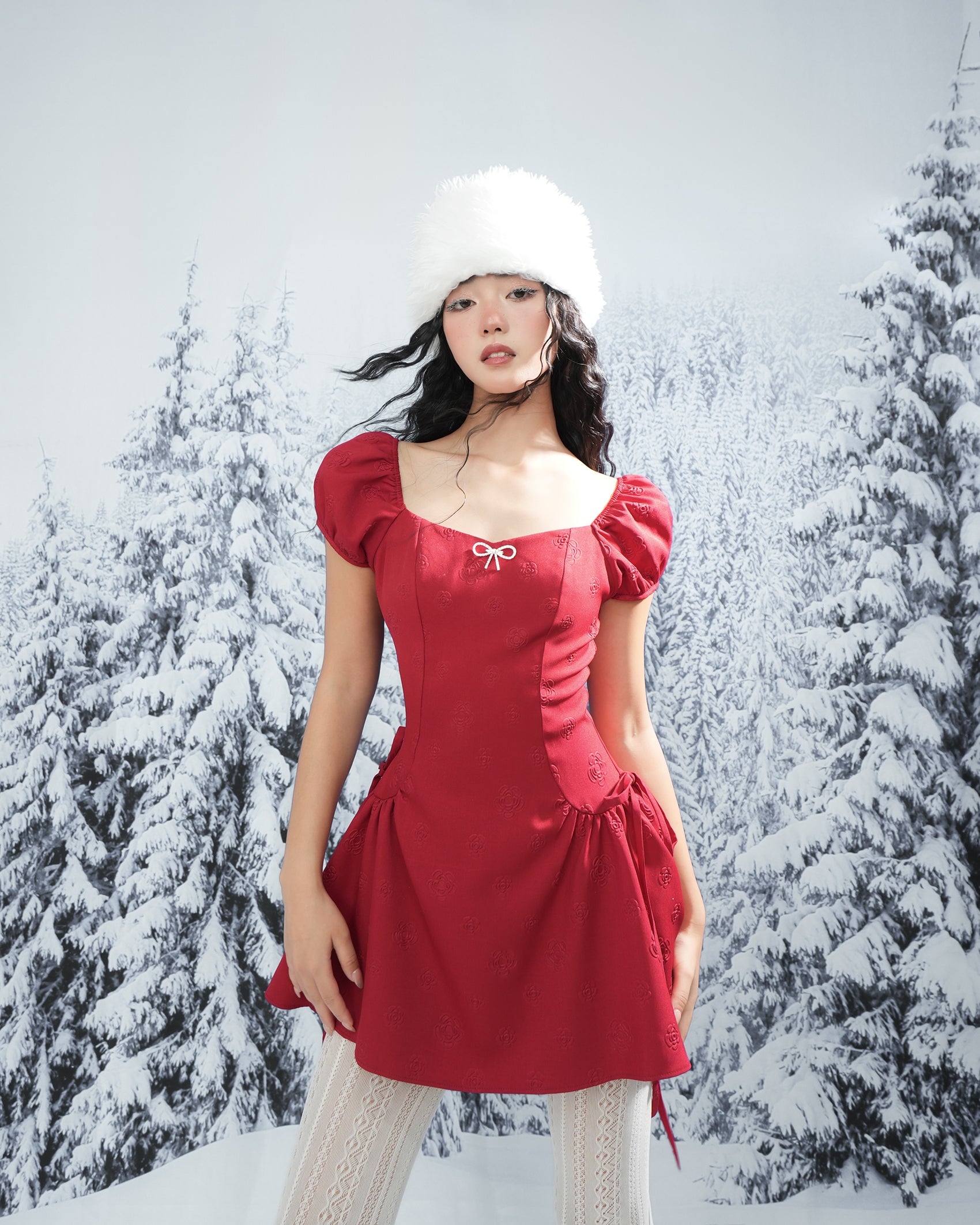 - Chi tiết sản phẩm: Đầm cổ vuông tay phồng nhún 2 bên