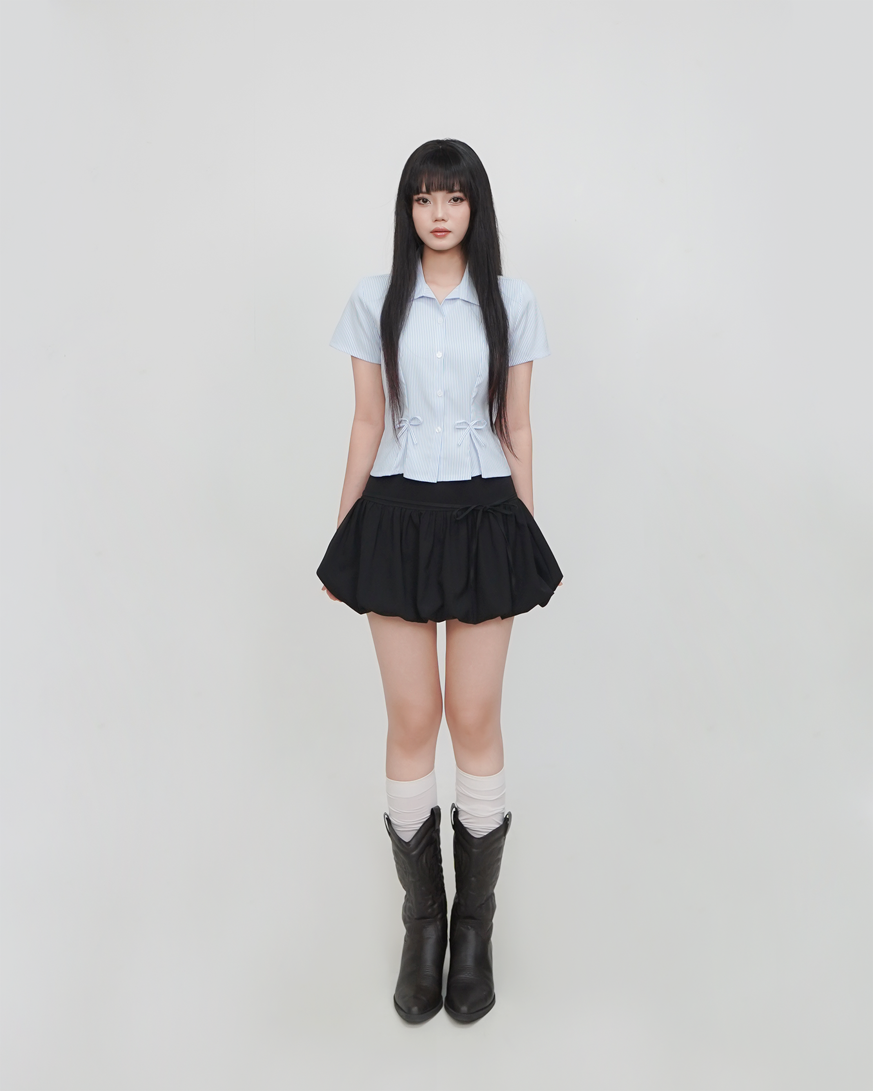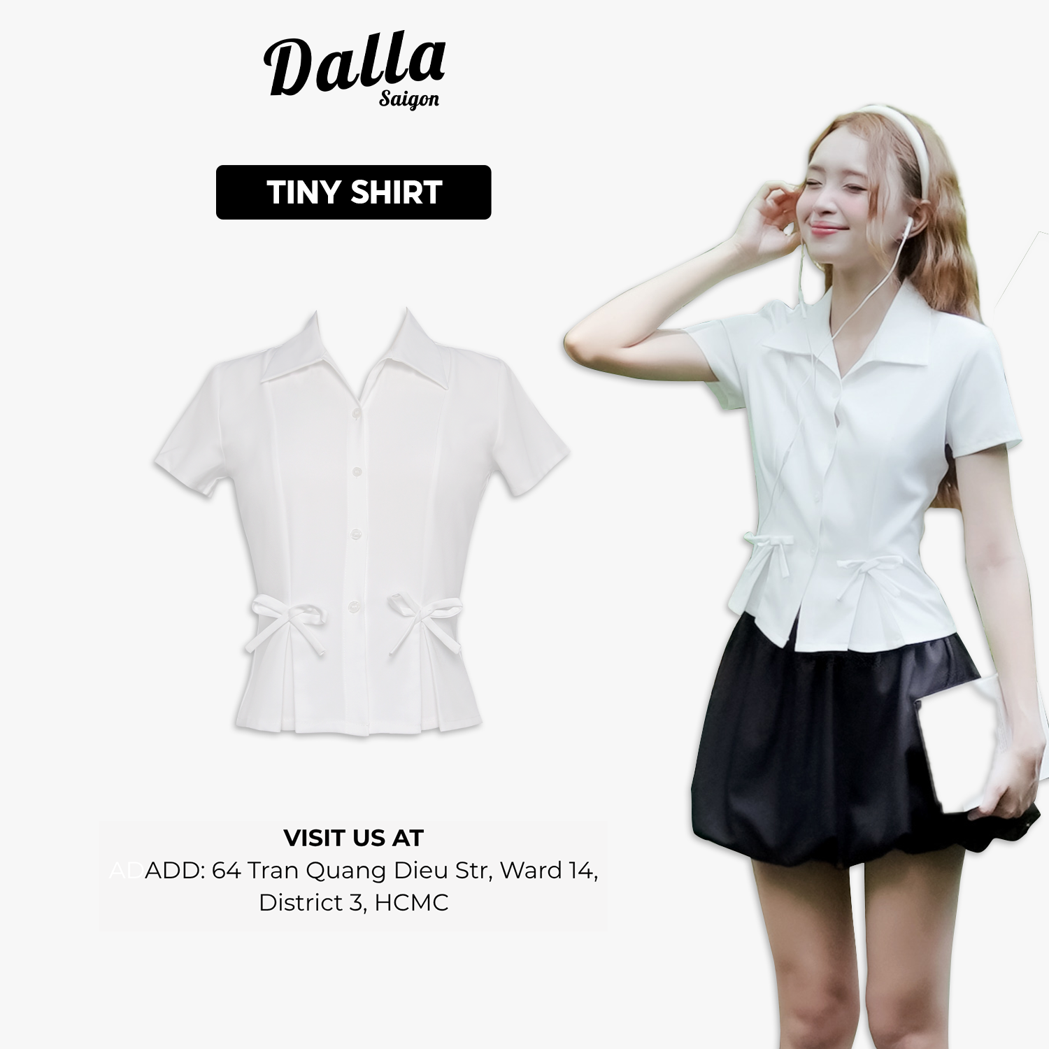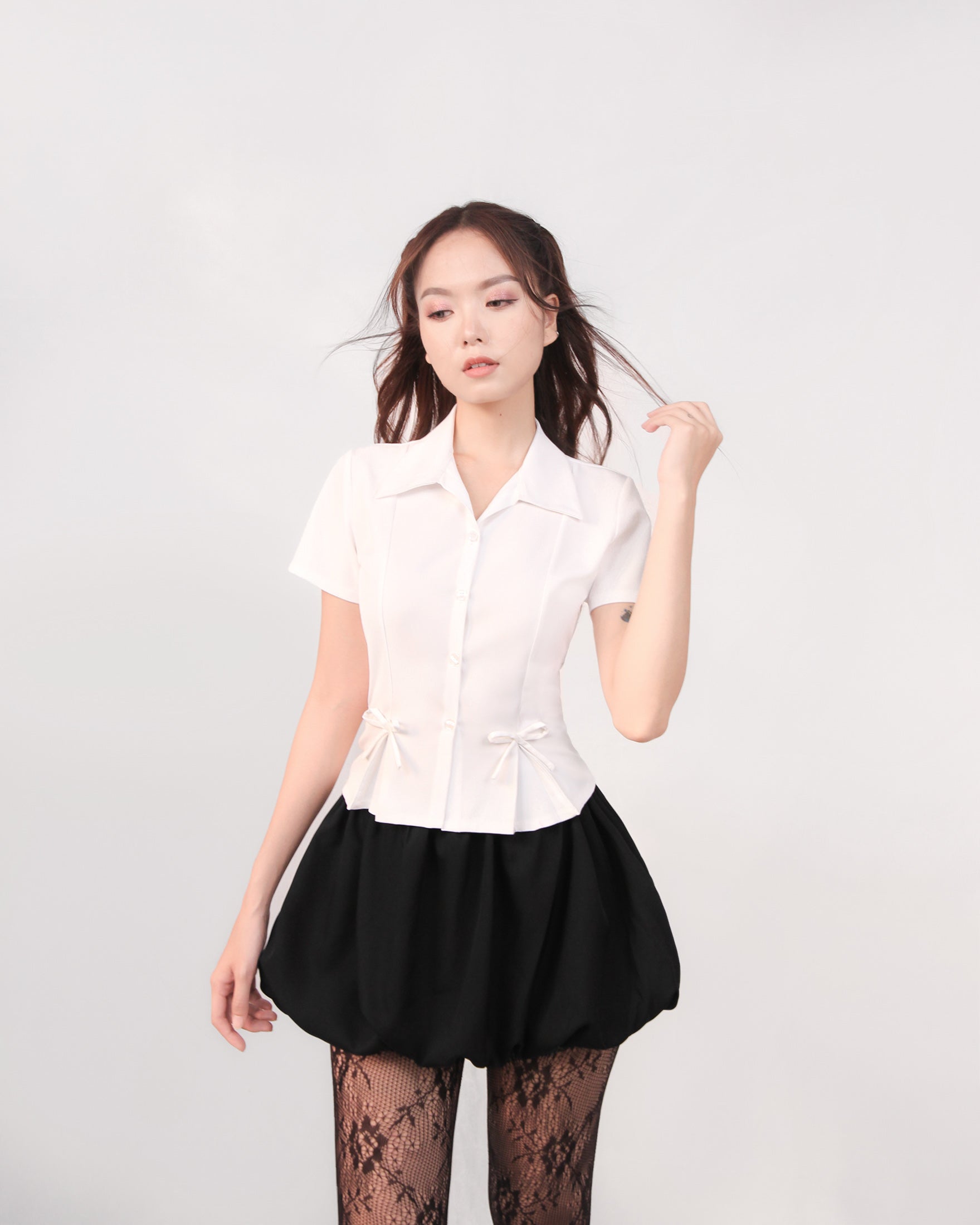 - Chi tiết sản phẩm: Sơ mi xếp ly đính nơ tay ngắn