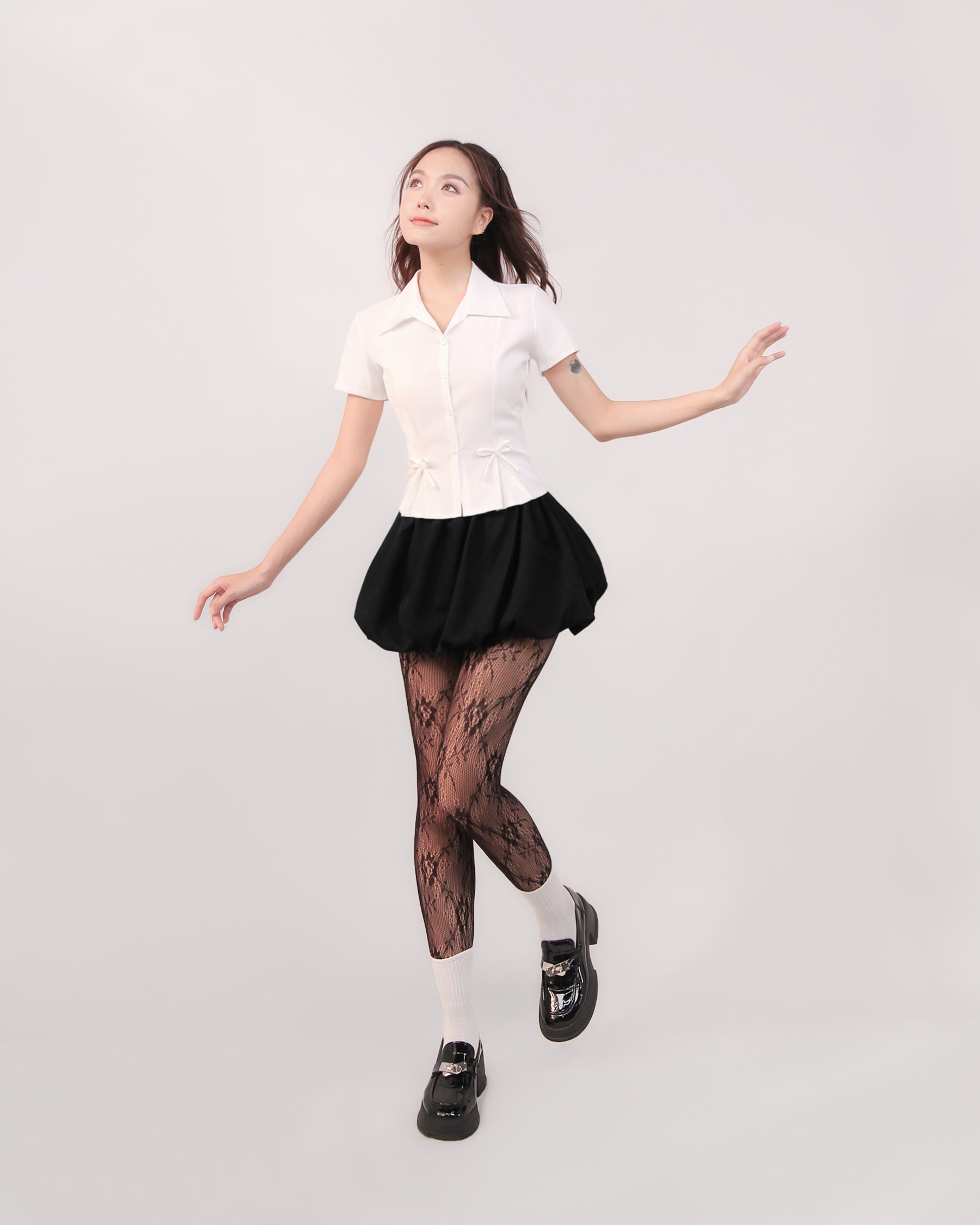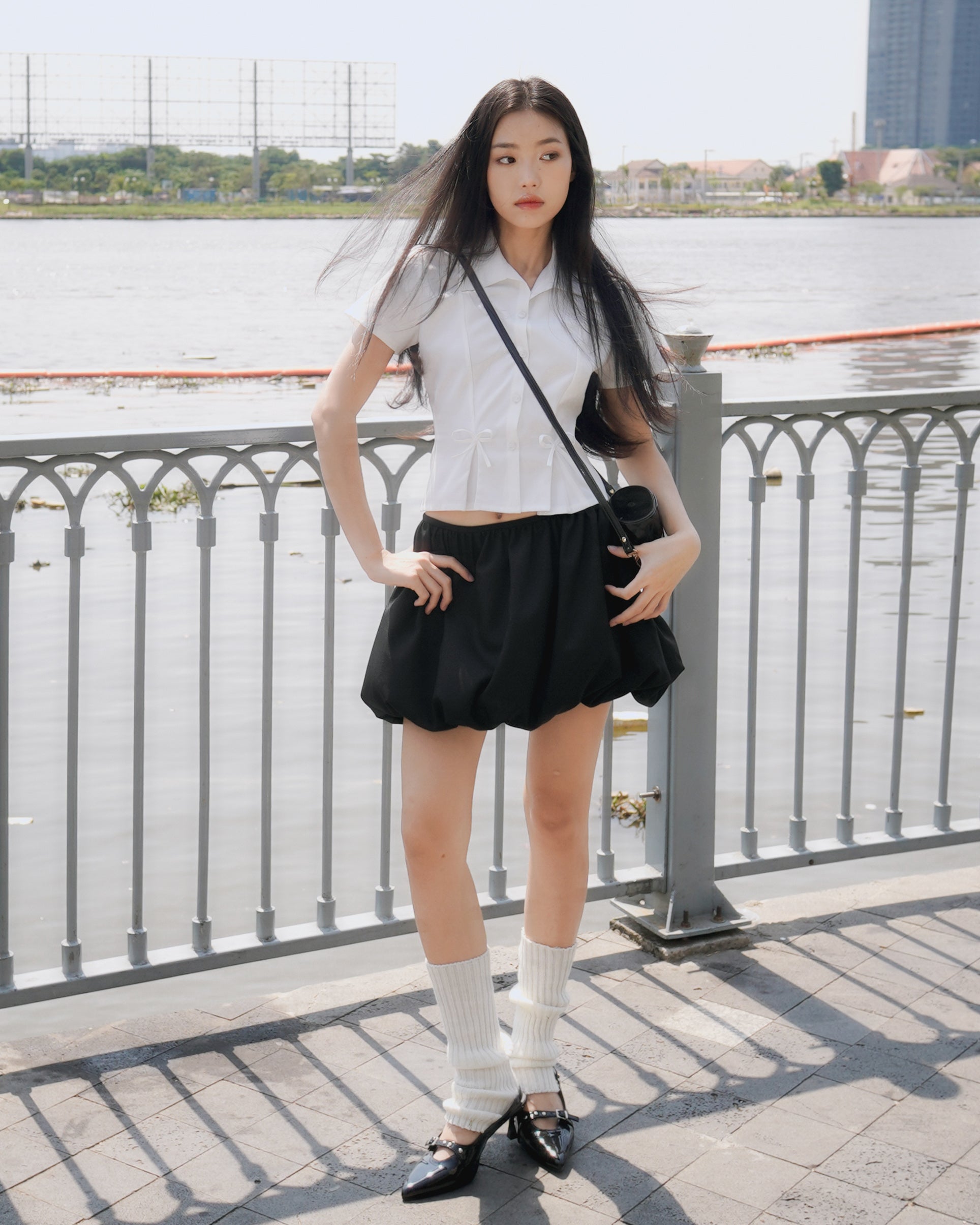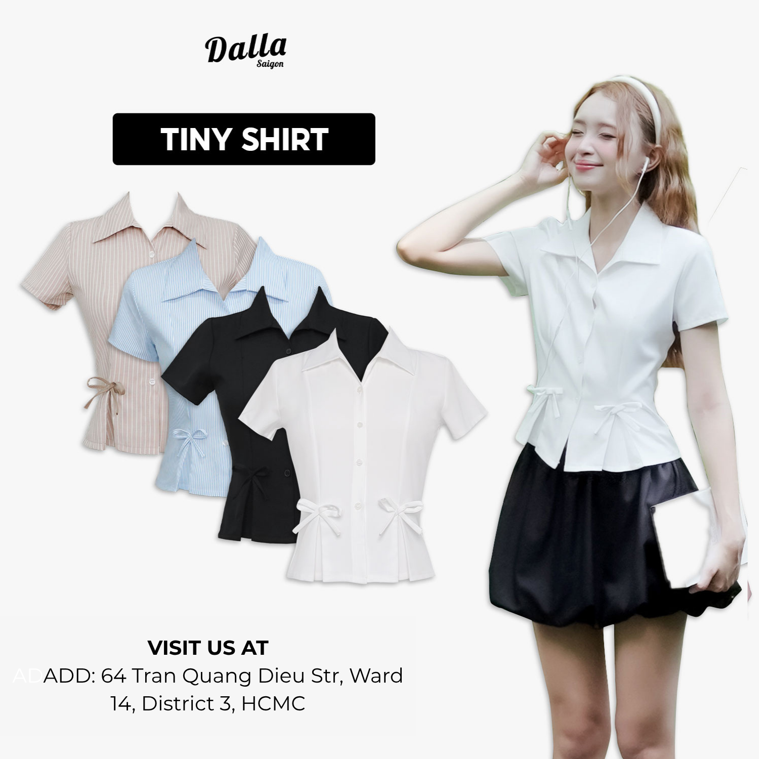 - Chi tiết sản phẩm: Sơ mi xếp ly đính nơ tay ngắn
