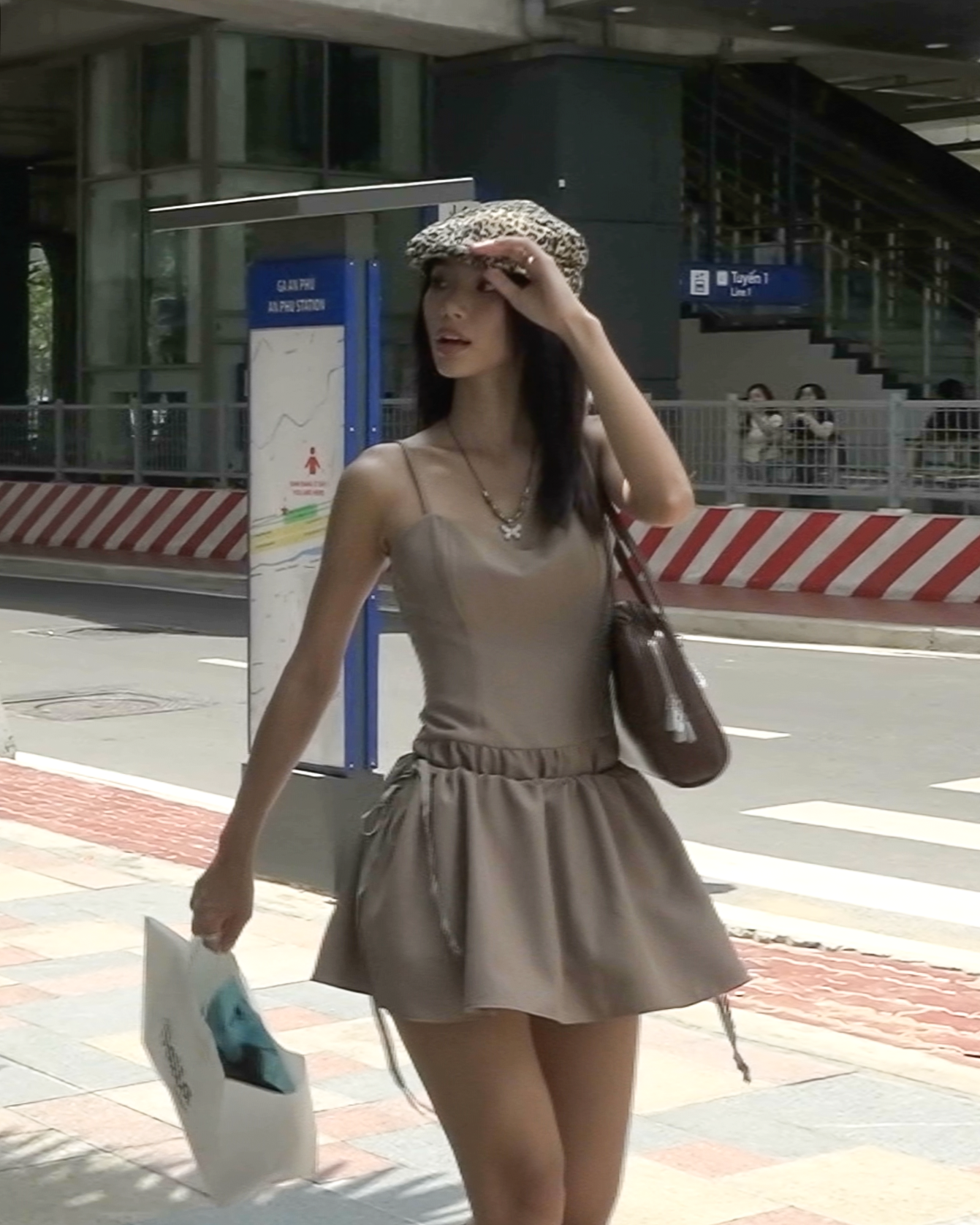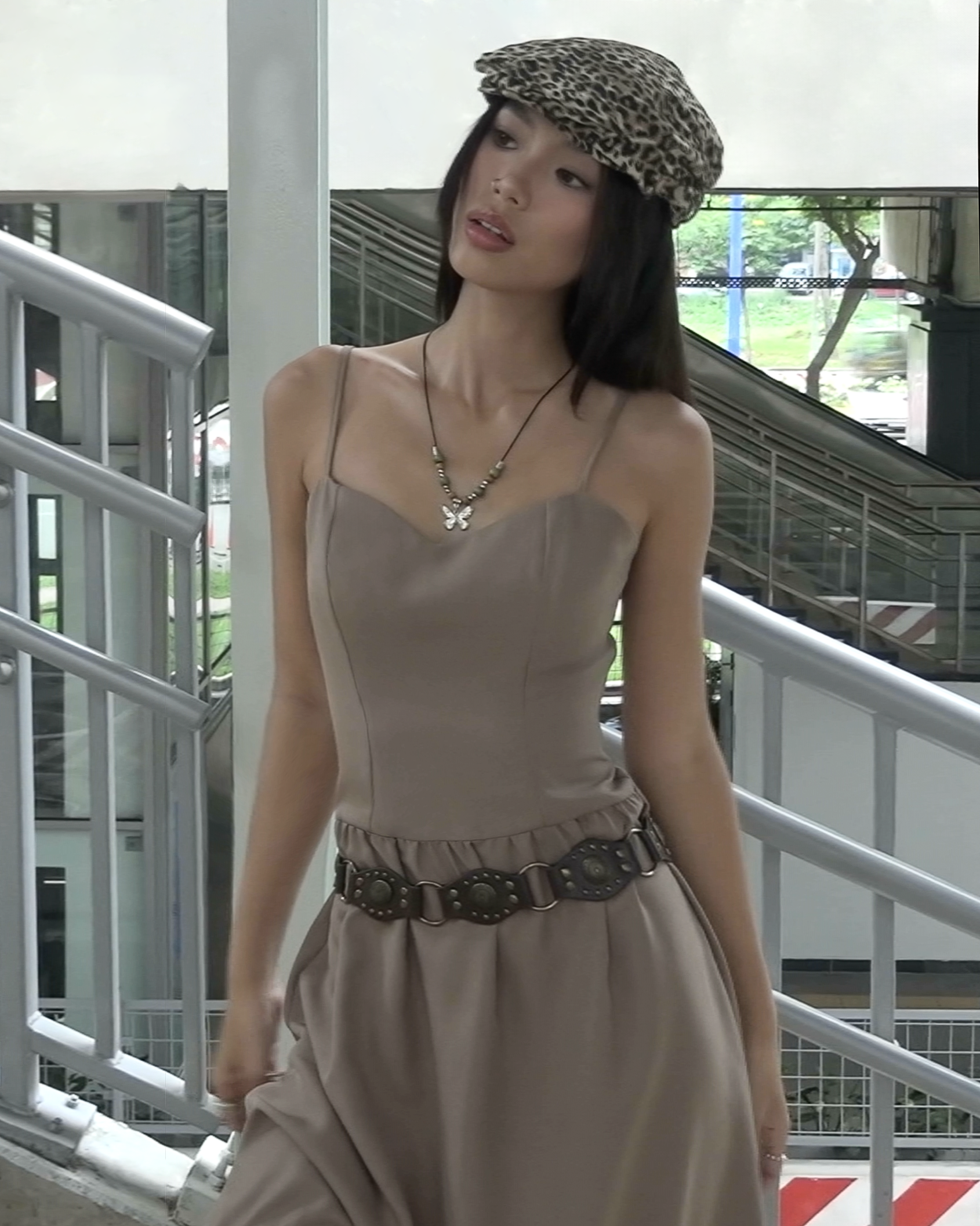 - Chi tiết sản phẩm: Đầm hai dây dáng suông cổ tim