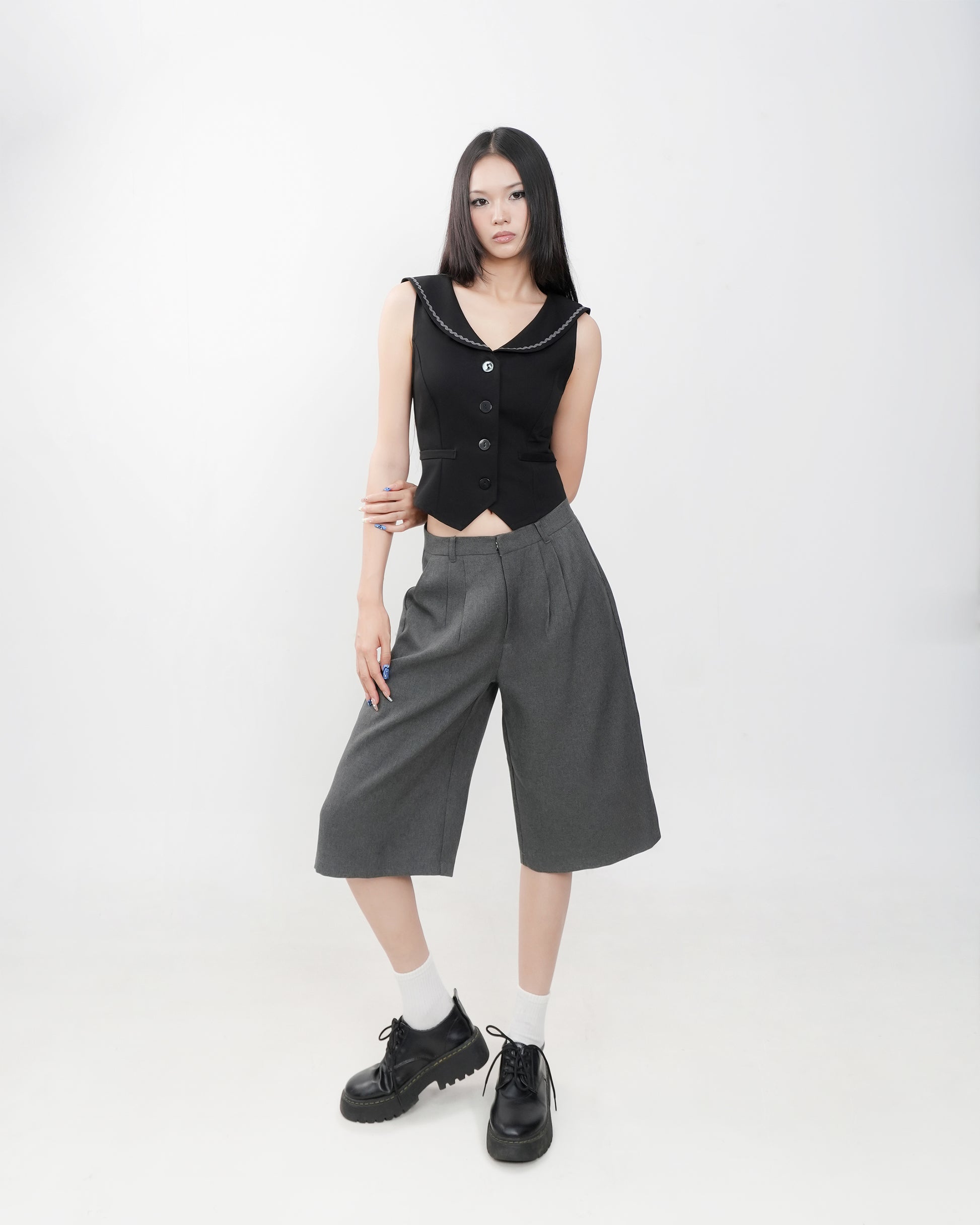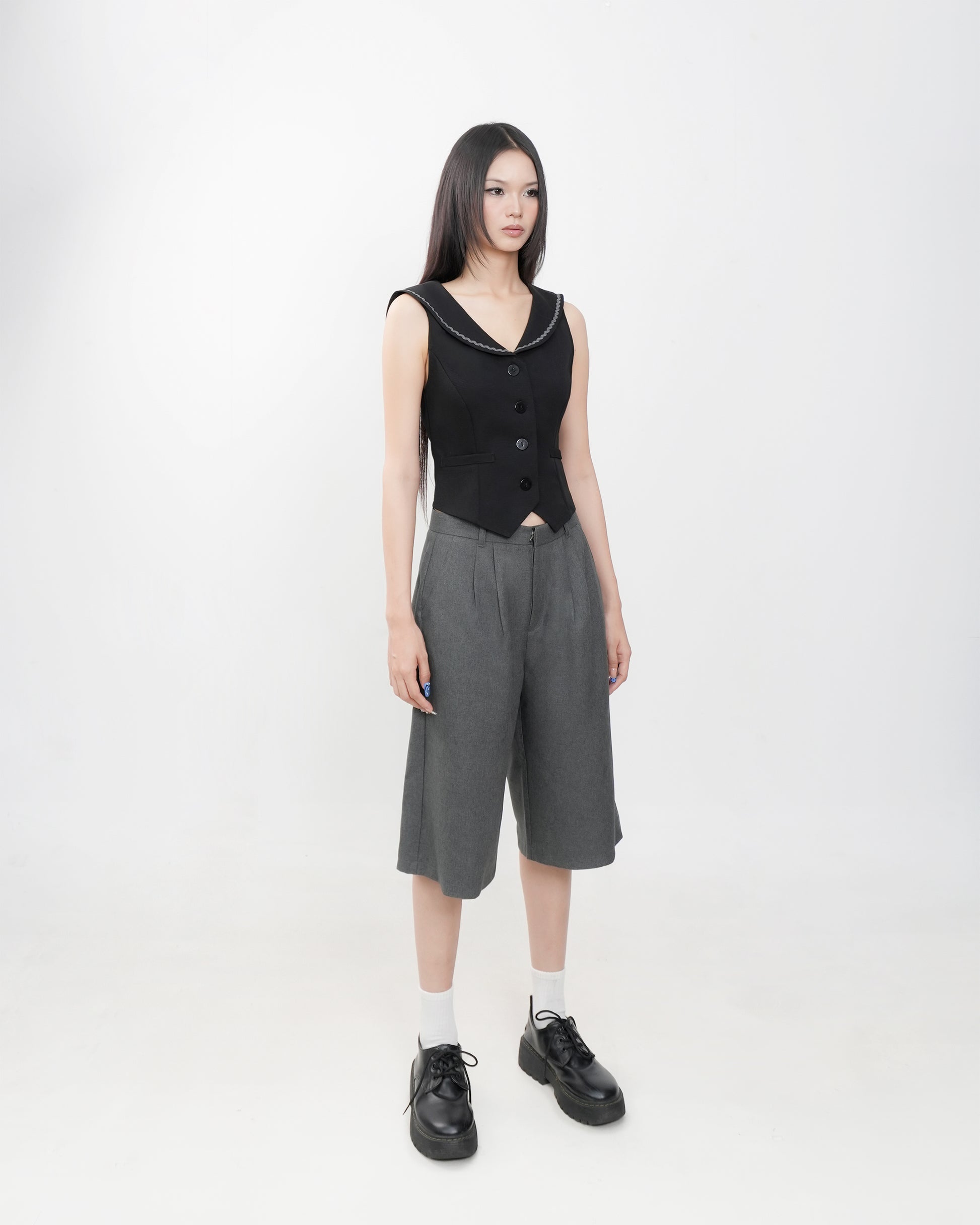 - Chi tiết sản phẩm: Áo gile dáng ngắn cổ viền