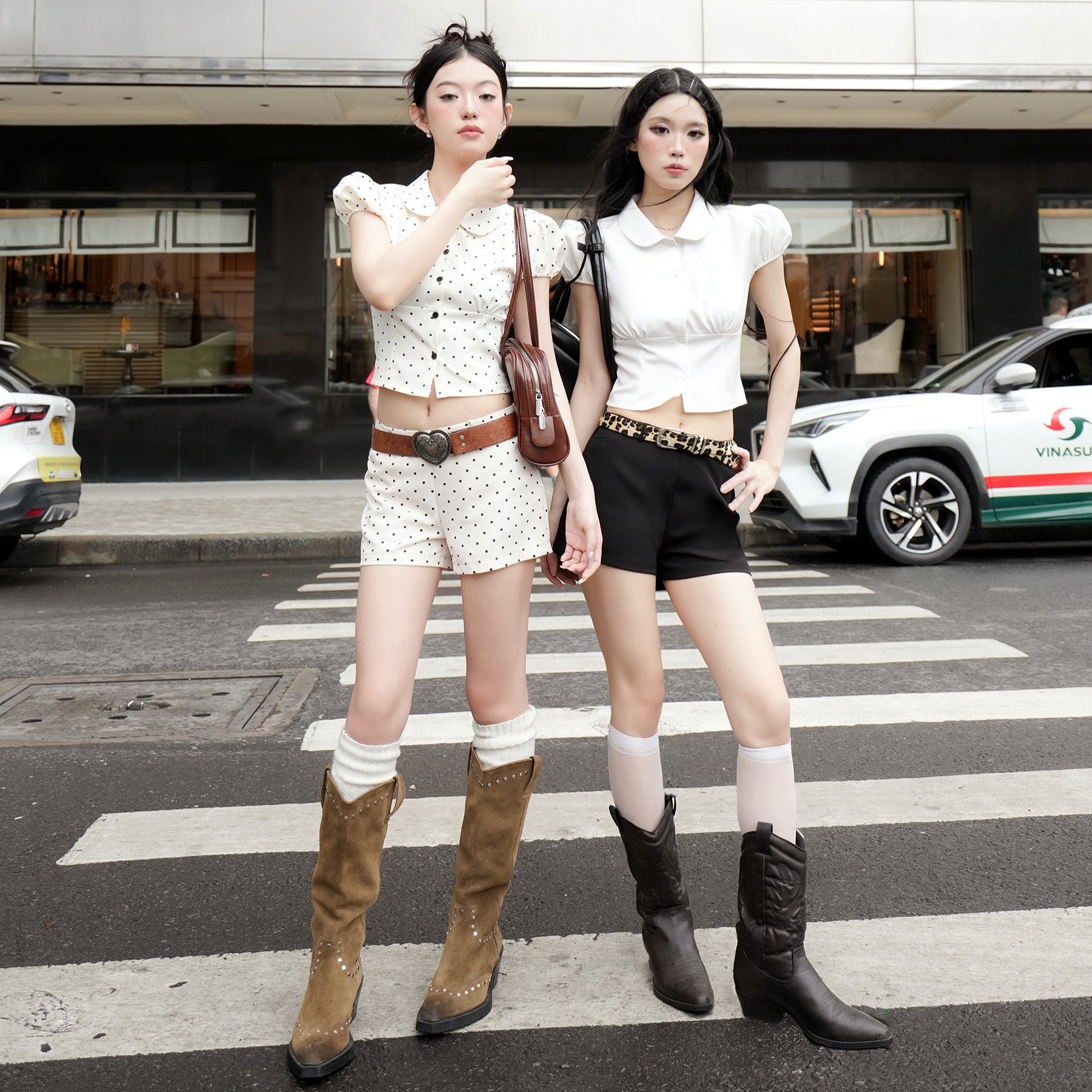 - Chi tiết sản phẩm: Sơ mi cổ tròn tay phồng nhún ngực