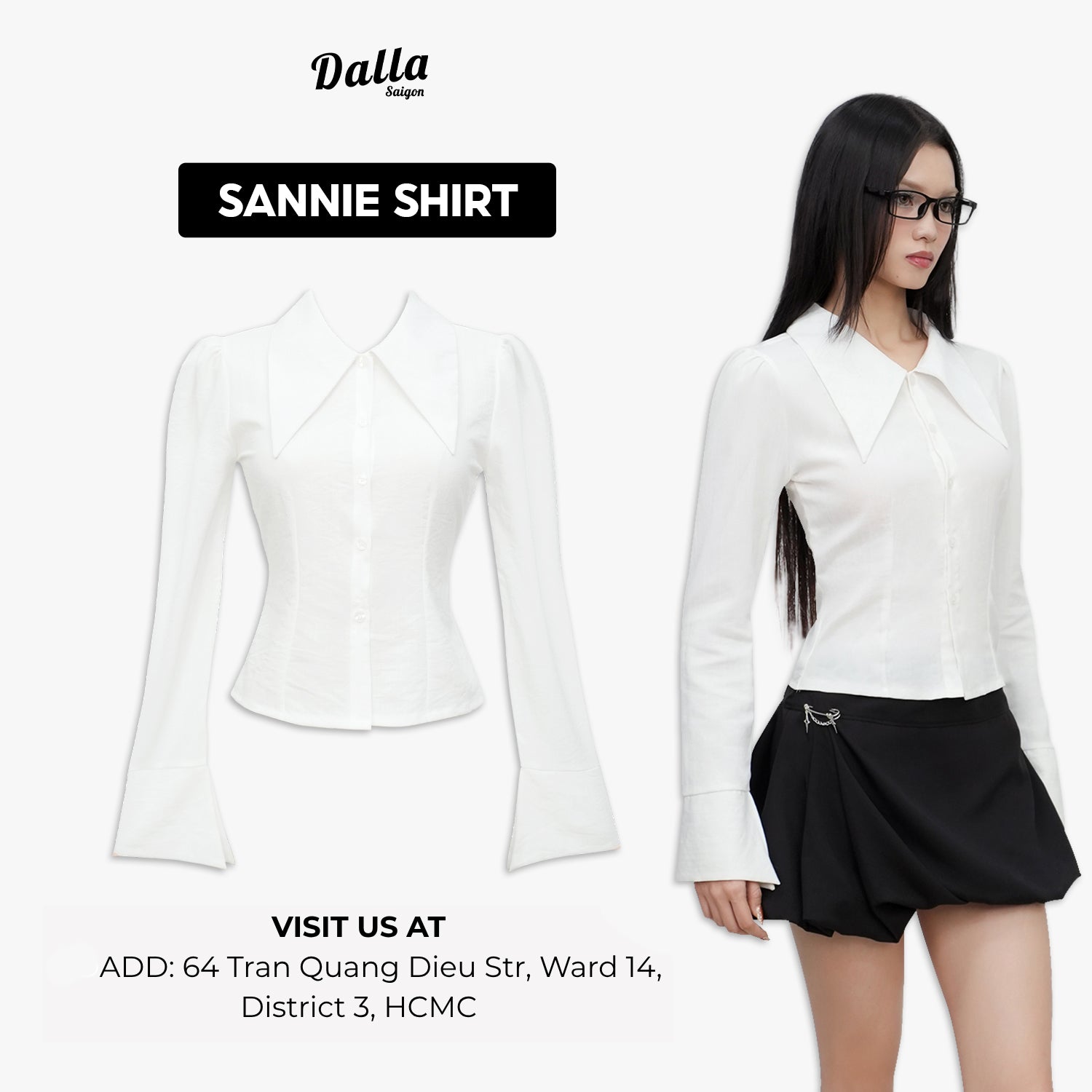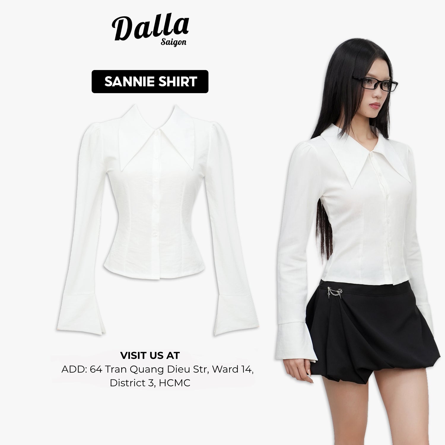 - Chi tiết sản phẩm: Sơ mi tay dài cổ nhọn dáng ôm tay loe