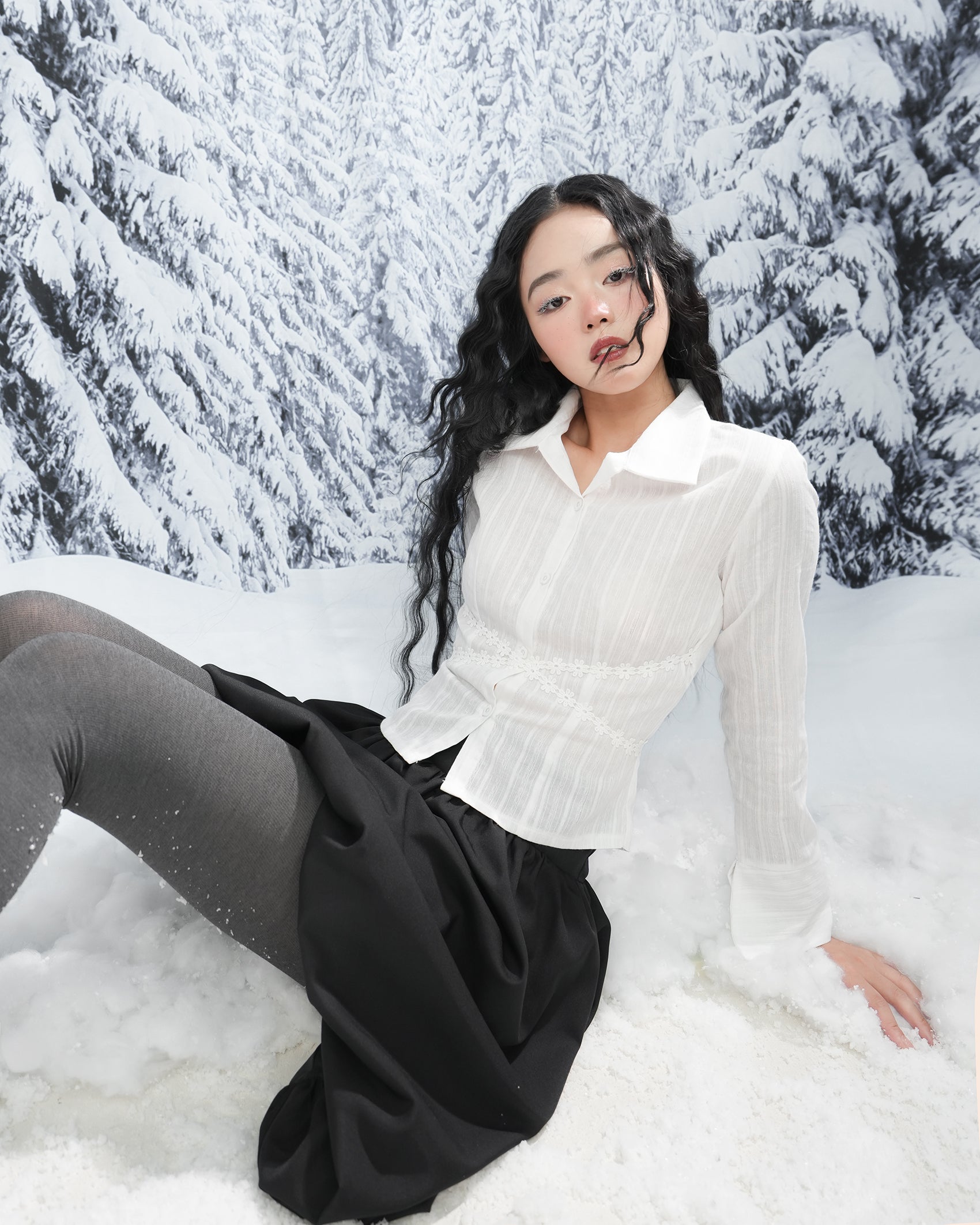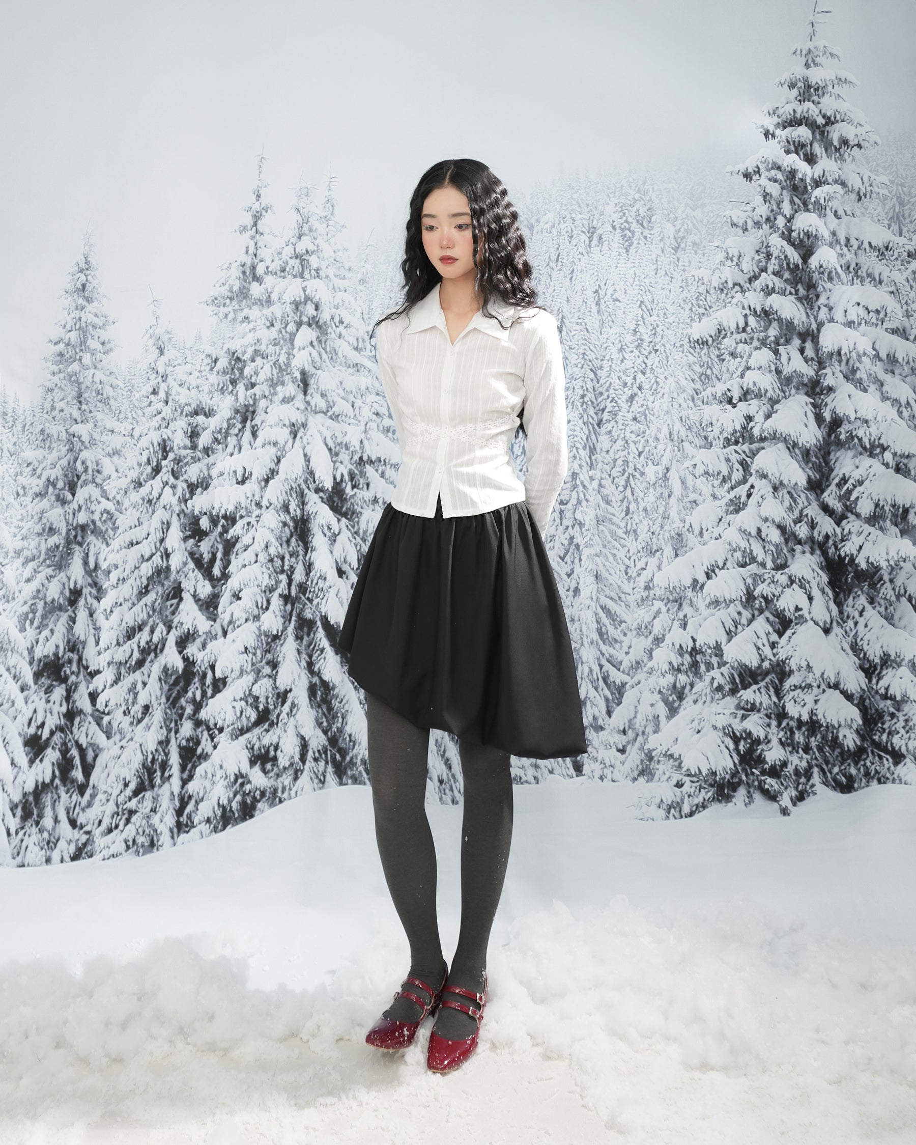 - Chi tiết sản phẩm: Sơ mi tay loe dài phối dây hoa